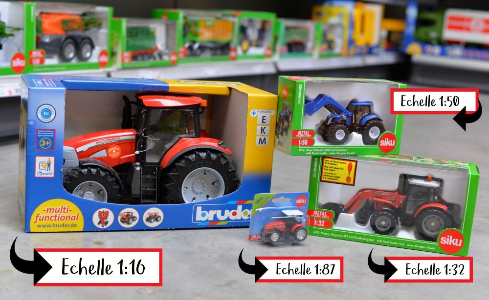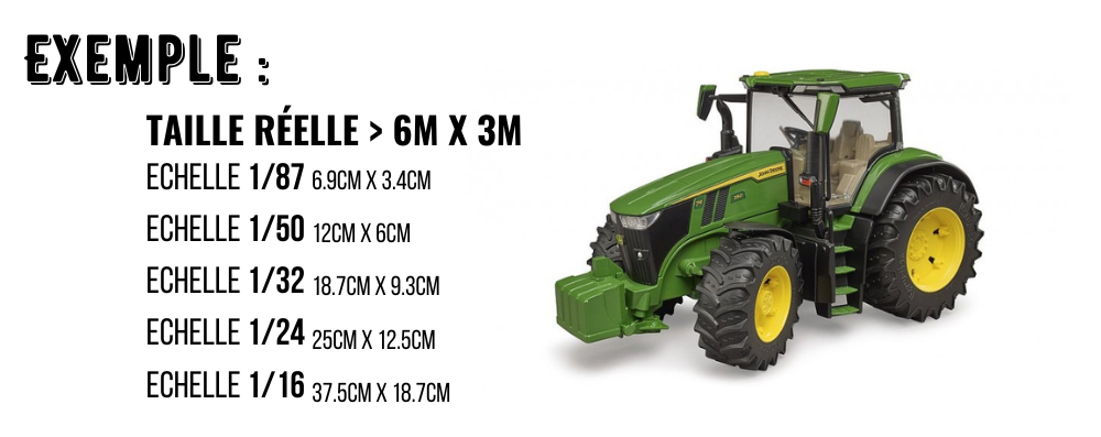 Il ne faut pas se fier uniquement au visuel, l'échelle est l'information majeure à respecter ! Les échelles sont utilisées pour les maquettes et pour les modèles réduits comme les miniatures agricoles.