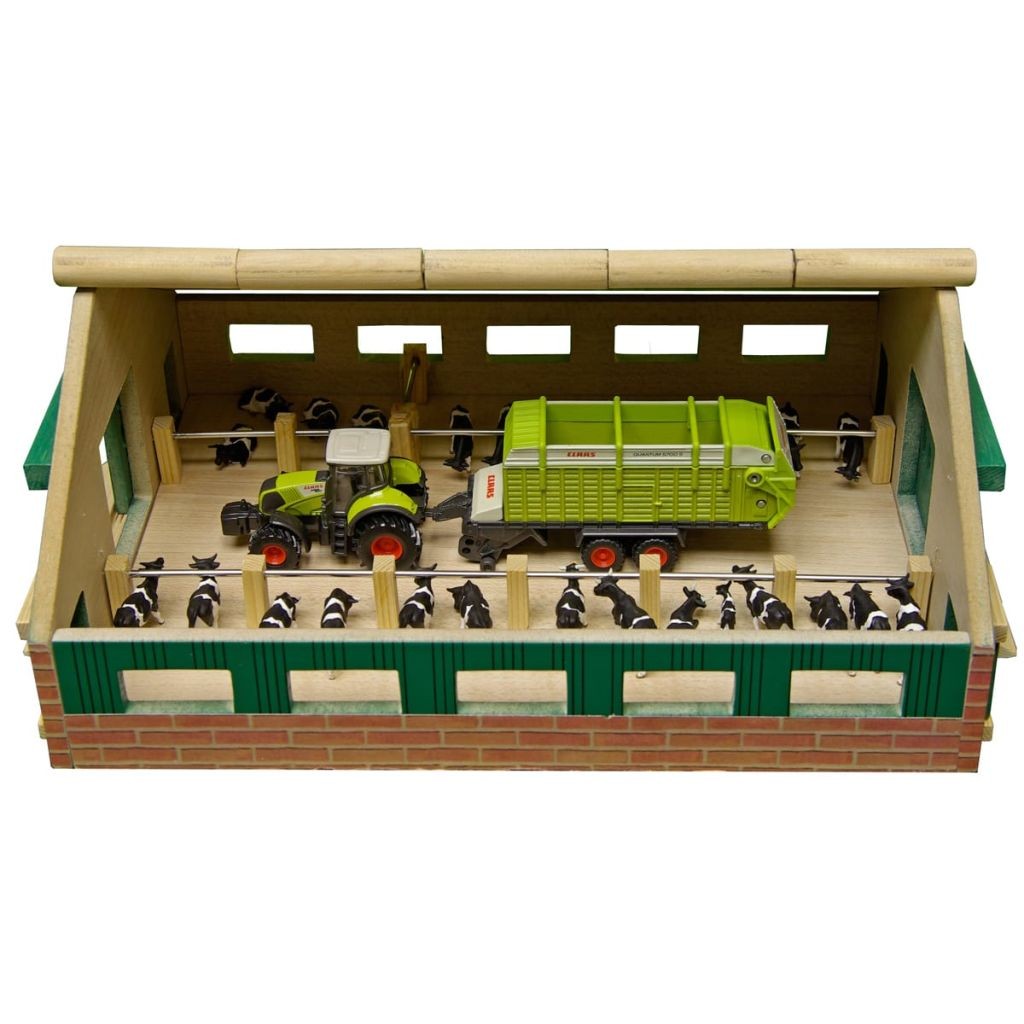 Créez votre propre exploitation agricole grâce à cette étable Kids Globe ! Il s'agit d'une réplique très réaliste réalisée à l'échelle 1:87, c'est à dire 21,2 cm sur 30cm et 11,2 cm de hauteur. Une grande allée centrale permet faciliter le passage et le nourrissage des vaches. Le toit se soulève pour offrir une vue complète sur l'étable et les animaux.