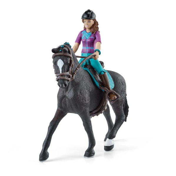 HORSE CLUB Lisa & Storm de schleich® HORSE CLUB suivent leur entraînement ensemble à chaque minute de temps libre. Quelle que soit la difficulté du tournoi, Lisa peut toujours compter sur Storm. Avec son hongre Hanovre, elle a déjà remporté de nombreux tournois. La figurine est entièrement articulée et peut chevaucher son cheval après l’avoir sellé et bridé. Mais pas sans emporter sa bombe et son joli bracelet turquoise ! Cet ornement relie les membres du HORSE CLUB, c’est pourquoi elle ne le quitte jamais.