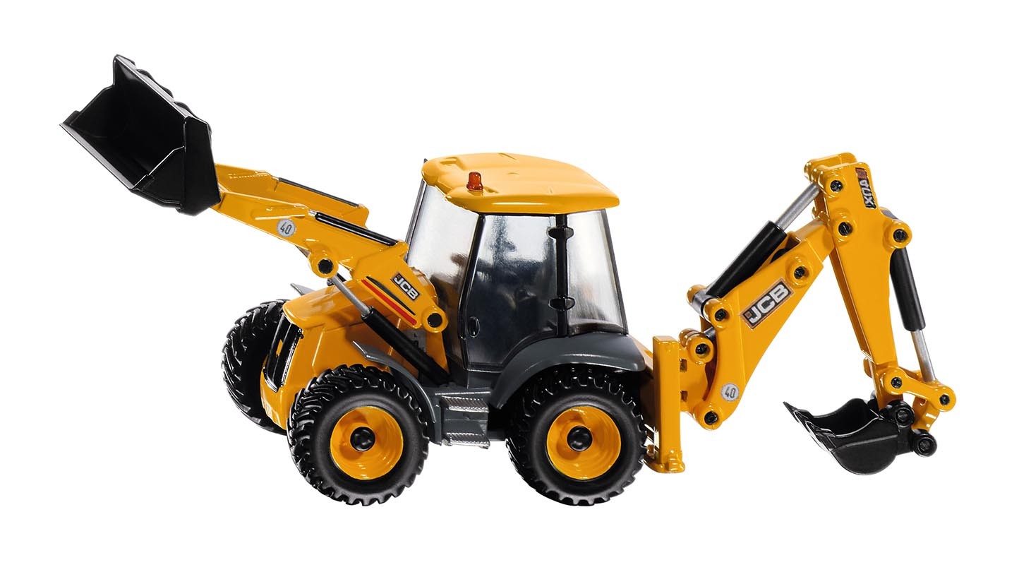 Les pelleteuses sont les machines multi-talents du chantier : une chargeuse sur roues à l'avant, une pelleteuse à l'arrière. Cela rend ces machines compactes très polyvalentes sur le chantier. La chargeuse-pelleteuse JCB 4CX est le multi-talent pour les petits constructeurs dans la salle de jeux. Sur le véhicule à l'échelle 1:50, le chargeur frontal, la pelleteuse et les pelles arrière sont mobiles. De plus, le bras de la pelleteuse à l'arrière peut pivoter à droite et à gauche.