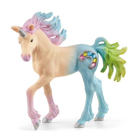 Il y a vraiment beaucoup de créatures multicolores dans l’univers magique de BAYALA. Notre poulain Licorne Bonbon de l’univers schleich® BAYALA® est probablement tout en haut de l’échelle des couleurs. En plus, il procure beaucoup de joie dans ta chambre d’enfant. Rien que son pelage élégant met de bonne humeur et crée une ambiance festive. Le Poney Licorne, qui n’a pas de couleur préférée, sinon toutes, aime les grandes étables et les t-shirts colorés. L’origine de son pelage multicolore reste encore inconnue à ce jour. Peut-être la découvriras-tu ?