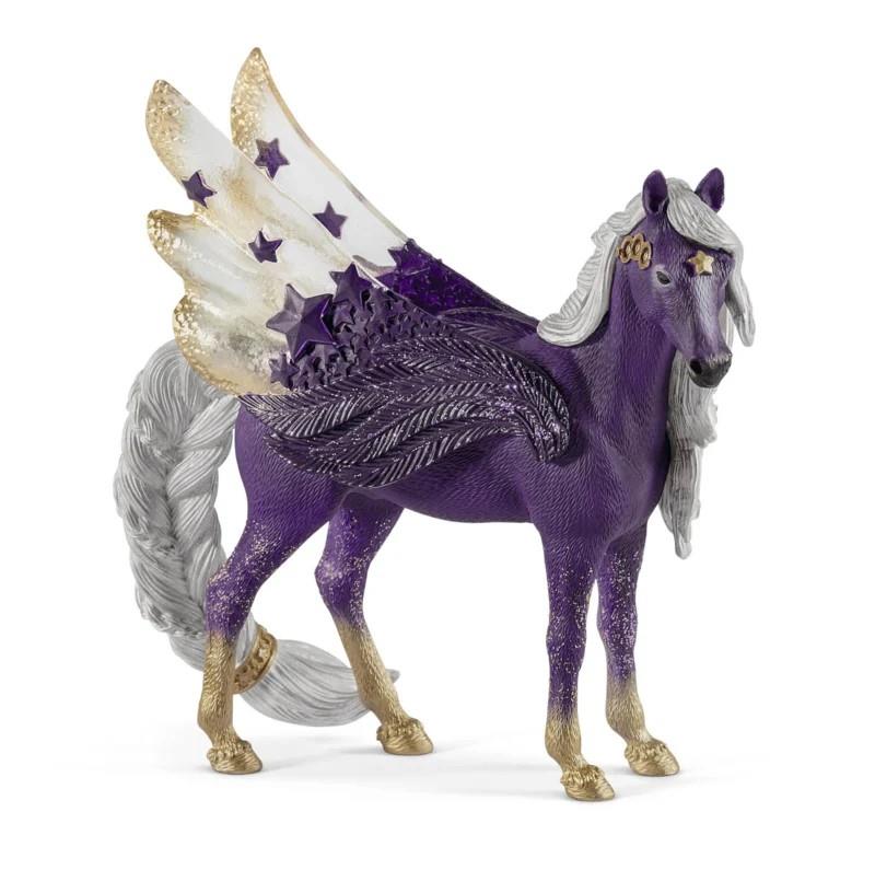 Cette magnifique jument Pégase des étoiles ne vient pas de cet univers. Elle provient du fin fond du firmament et cela se voit au premier coup d'œil. Elle garde des secrets dont nul n'a la moindre idée. Son apparence extérieure renforce son côté magique car elle donne l'impression de descendre directement du ciel étoilé nocturne. Elle et sa famille, le fier étalon licorne de lune et leur joli poulain licorne d'étoile filante, forment un ensemble féérique.