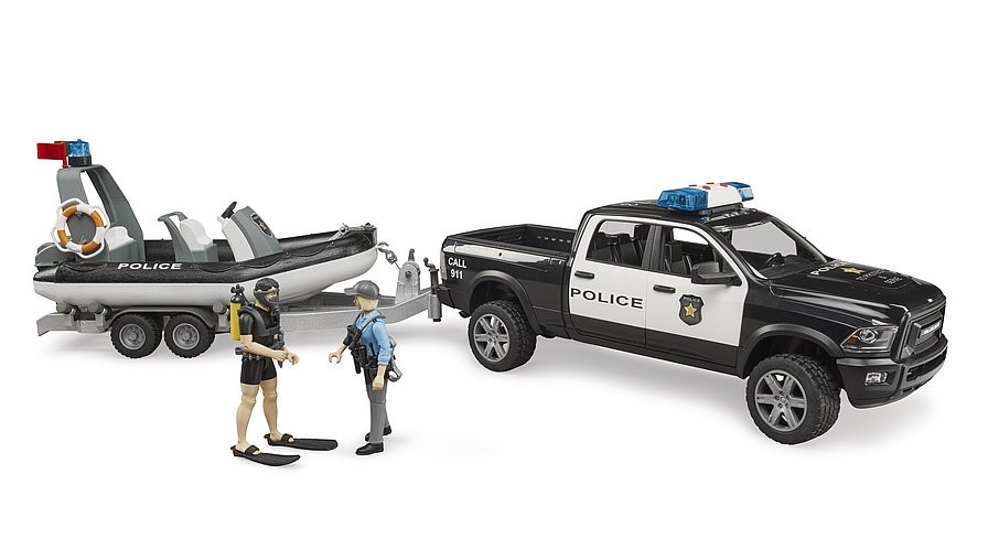 Pick-Up RAM 2500 police avec bateau, remorque, policier et plongeur BRUDER 02507